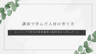 挑戦する新人エンジニアの軌跡 講演で学んだ人材の育て方-エンジニア1年目が保育業界の経営者から学んだこと こんにちは、2025年4月からIT業界で働くことになった新人エンジニアです。 先日、地元の経営者の講演を聞き「人を育てる」ことについて深く考える機会がありました。 登壇したのは、地元の保育関連企業の経営者の方でした。事業分野こ... 2025.08.01 挑戦する新人エンジニアの軌跡